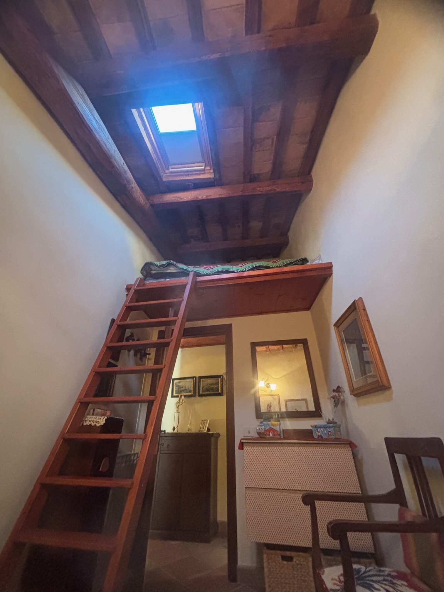 La zona notte comprende due camere da letto ben distribuite, di cui una con soppalco ed un bagno curato nei dettagli.